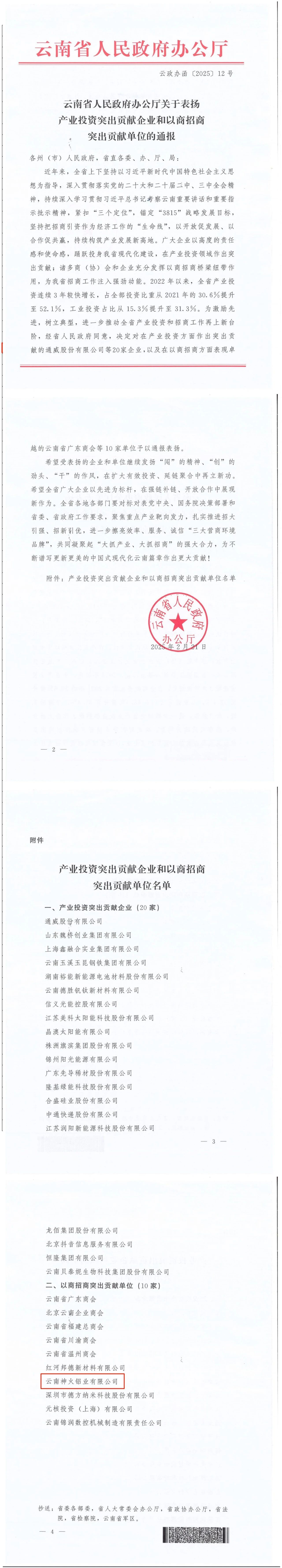 以商招商贡献突出!云南神火获云南省政府通报表扬