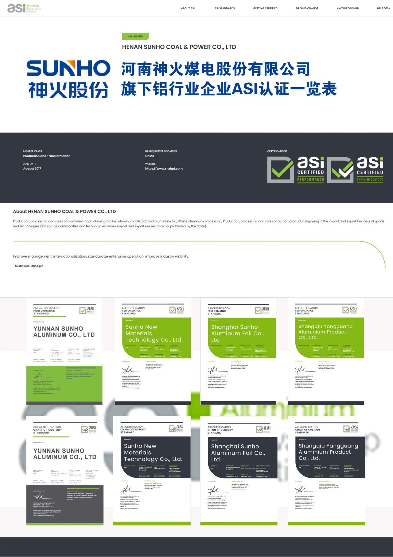 神火铝基产业链全线通过ASI认证